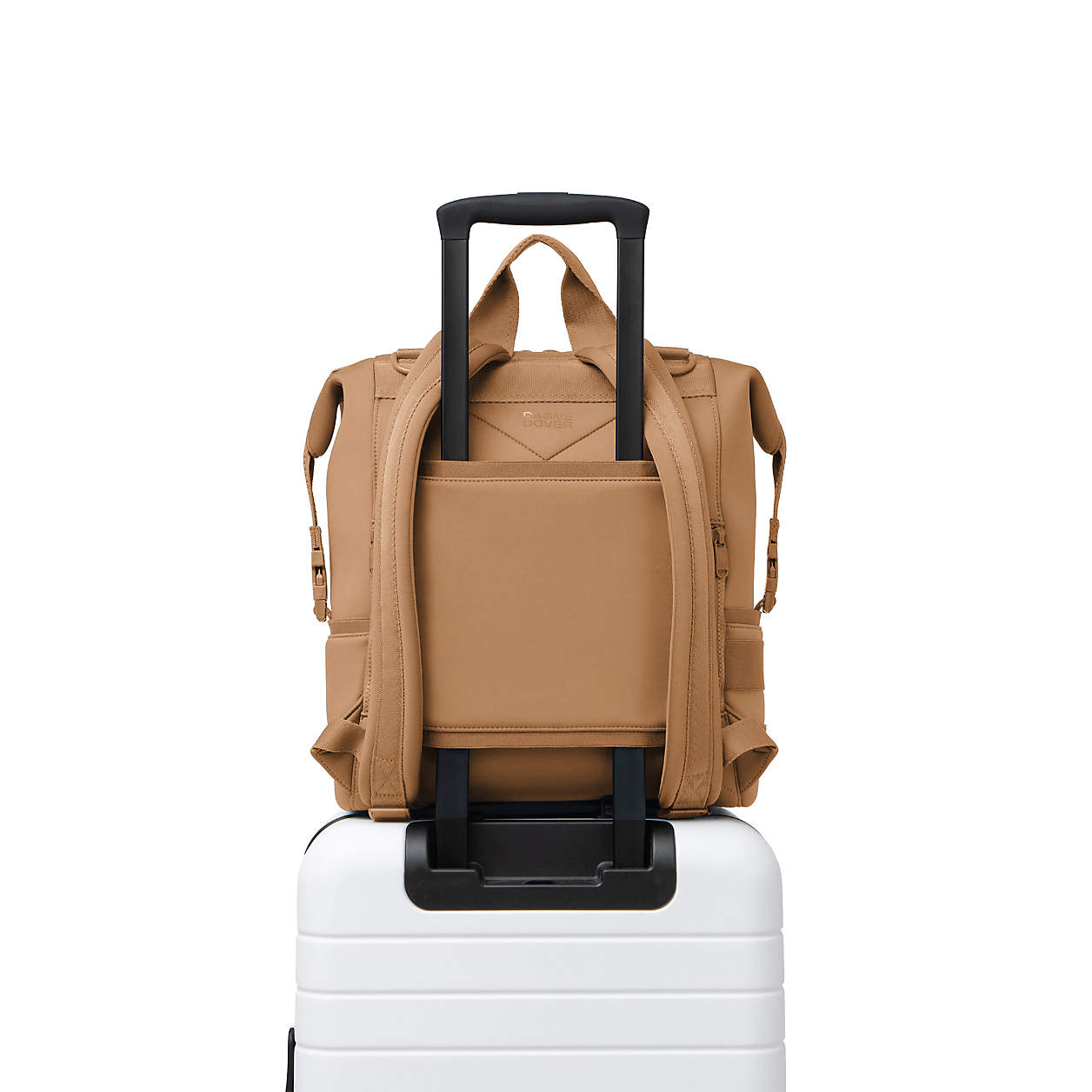 This ones for all the Indi kids and their post-nursing parents. The Medium Indi diaper backpack in Camel has storage for extra diapers and clothes, but it also has pouches and pockets for wipes, toys, snacks, and more. Not only that, but its got two key leashes–one for keys and one for other on-hand essentials (like, say, a binky). And if your little one has an older sibling that likes to (or needs to) be distracted by a tablet, theres room for that too.