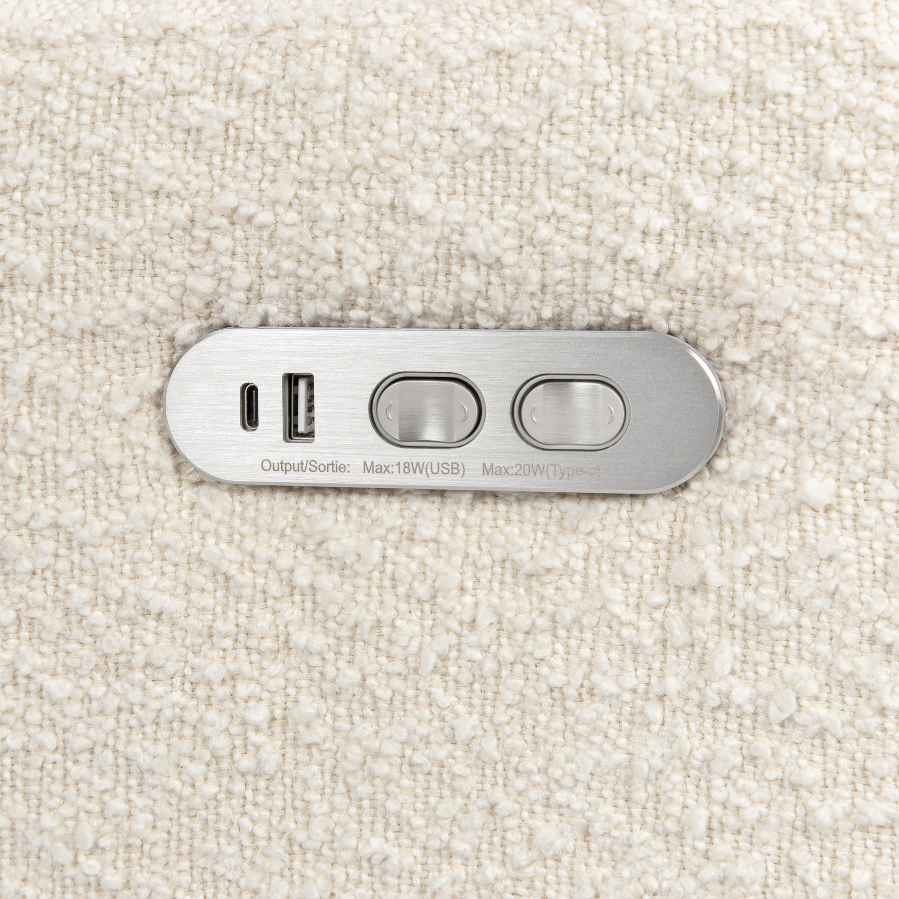 - POWER RECLINER: Smooth and quiet reclining mechanism lowers headrest and raises footrest effortlessly with the push-button control panel and an included USB A/C charging port keeps your phone fully charged. PLEASE NOTE: Charging panel is only rated for small devices such as a phone, DO NOT use for large devices such as a tablet. Doing so will damage the motor and eliminate power (charging and reclining) capabilities.