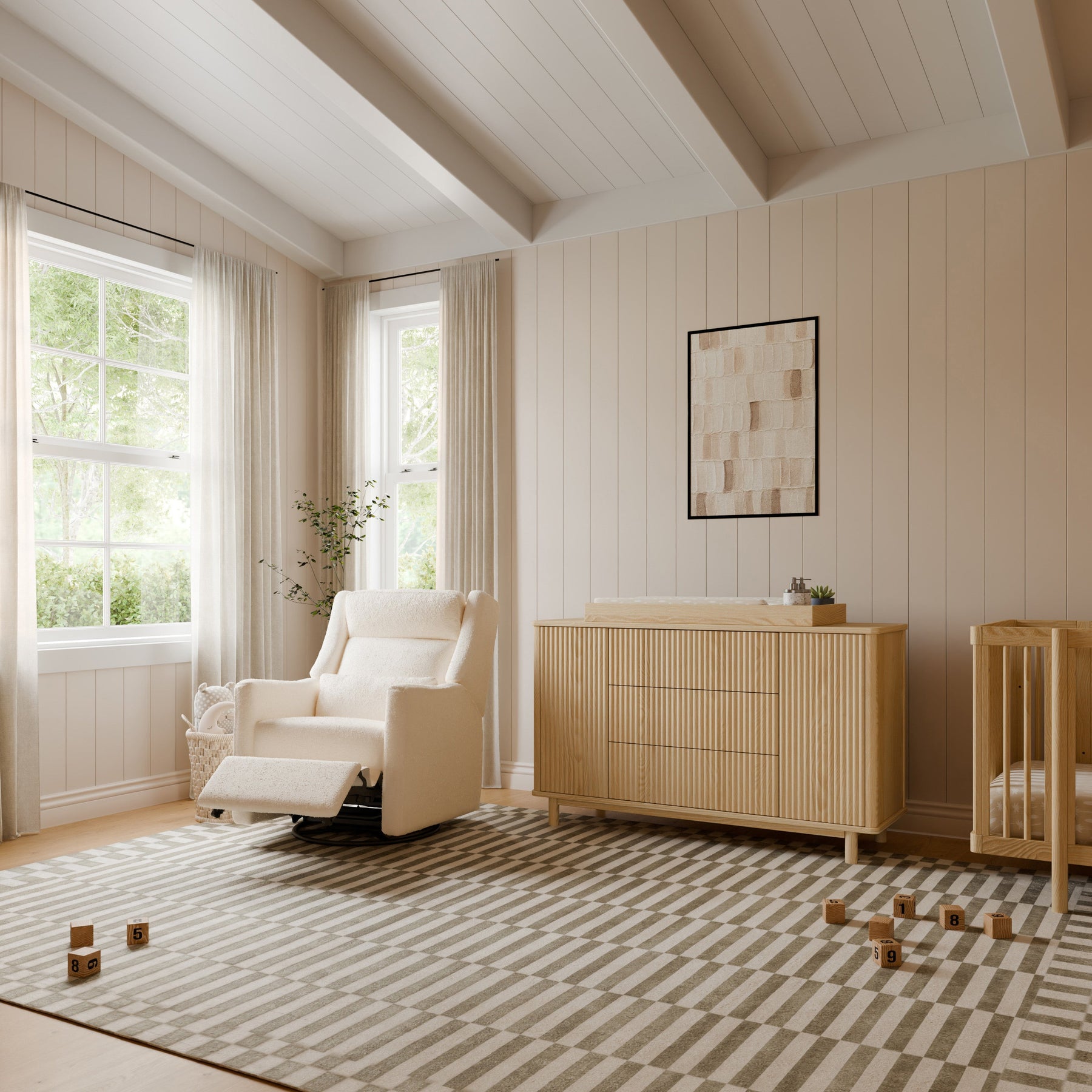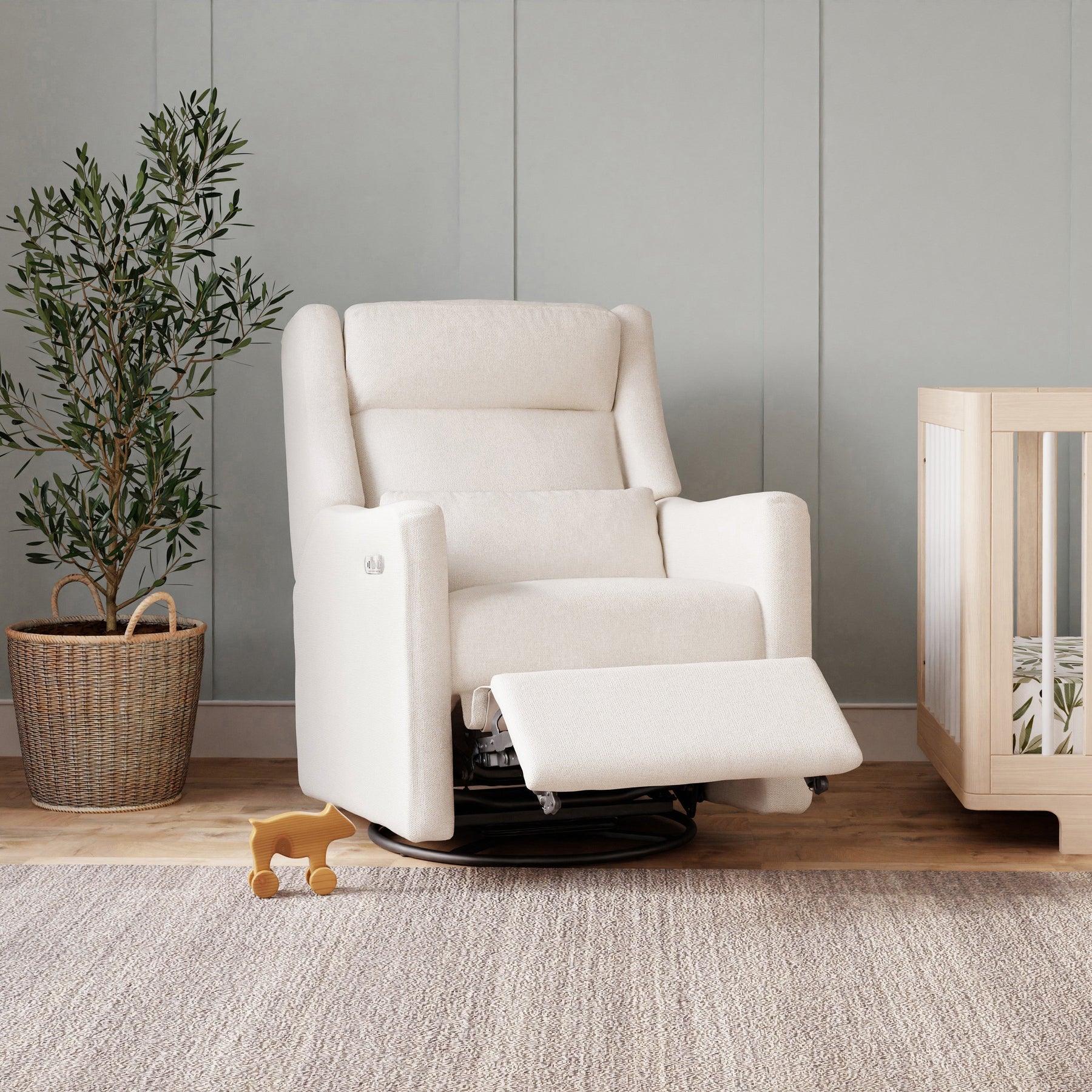 Our #1 best selling recliner just got an upgrade! The Kiwi Plus has all the best features of our popular Kiwi Electronic Recliner & Glider - now with an adjustable headrest for even more personalized comfort! Designed to cradle you in relaxation, this stylish recliner features a smooth swivel and gentle gliding motion, making it perfect for cozy moments with your baby or unwinding after a long day. The new adjustable power headrest provides extra support, ensuring that no matter your position, you’ll always be sitting comfortably. With its sleek, modern design and plush cushioning, the Kiwi Plus seamlessly blends style with function, enhancing any nursery or living space.