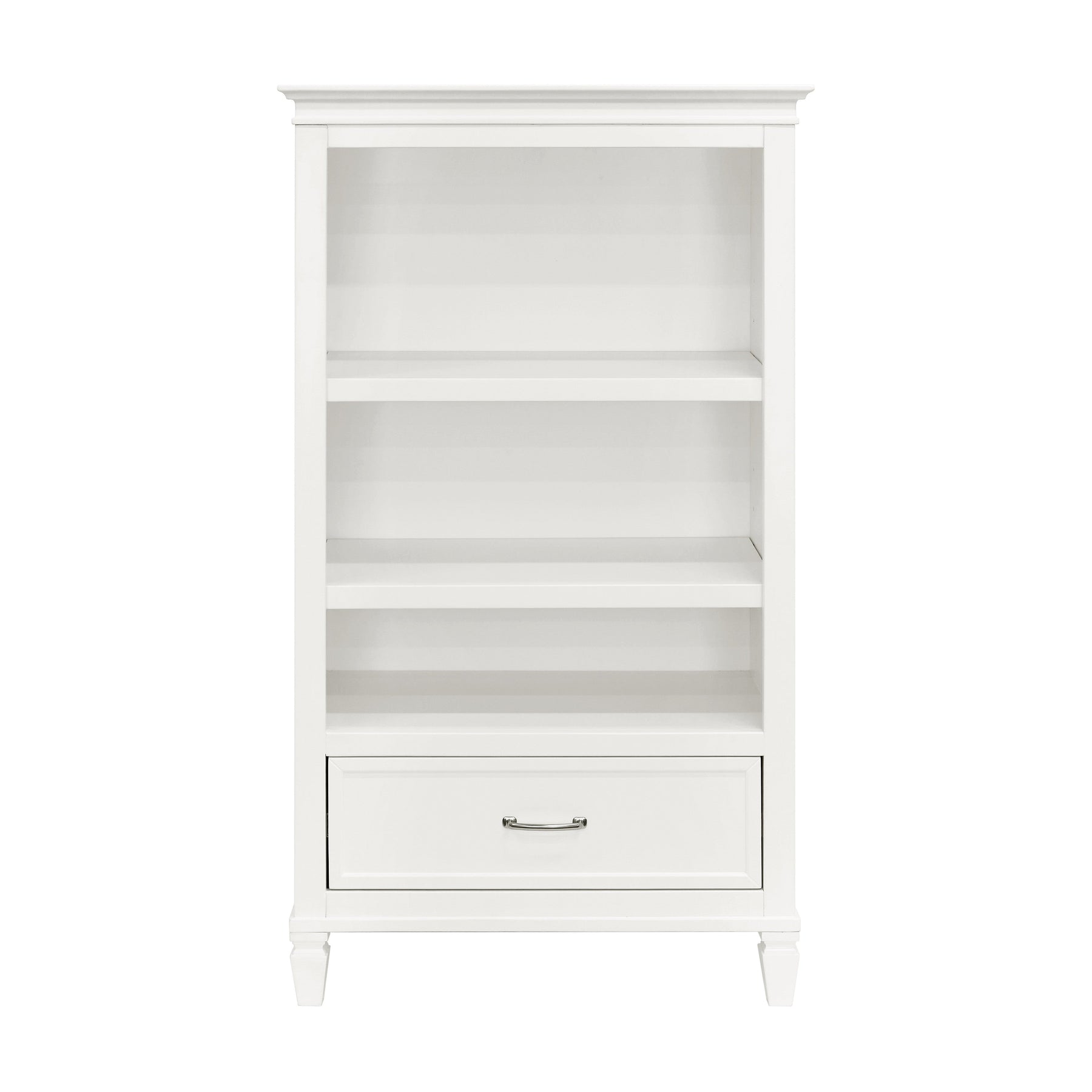 Bring the elegance of romantic French country inspired style into the home with the Darlington Nightstand. The nightstand balances classic raised molding, delicate tapered feet, and accent satin nickel drawer handles. Both spacious drawers feature dovetail construction with self-closing, ball-bearing drawer glides. Available in a Warm White finish.