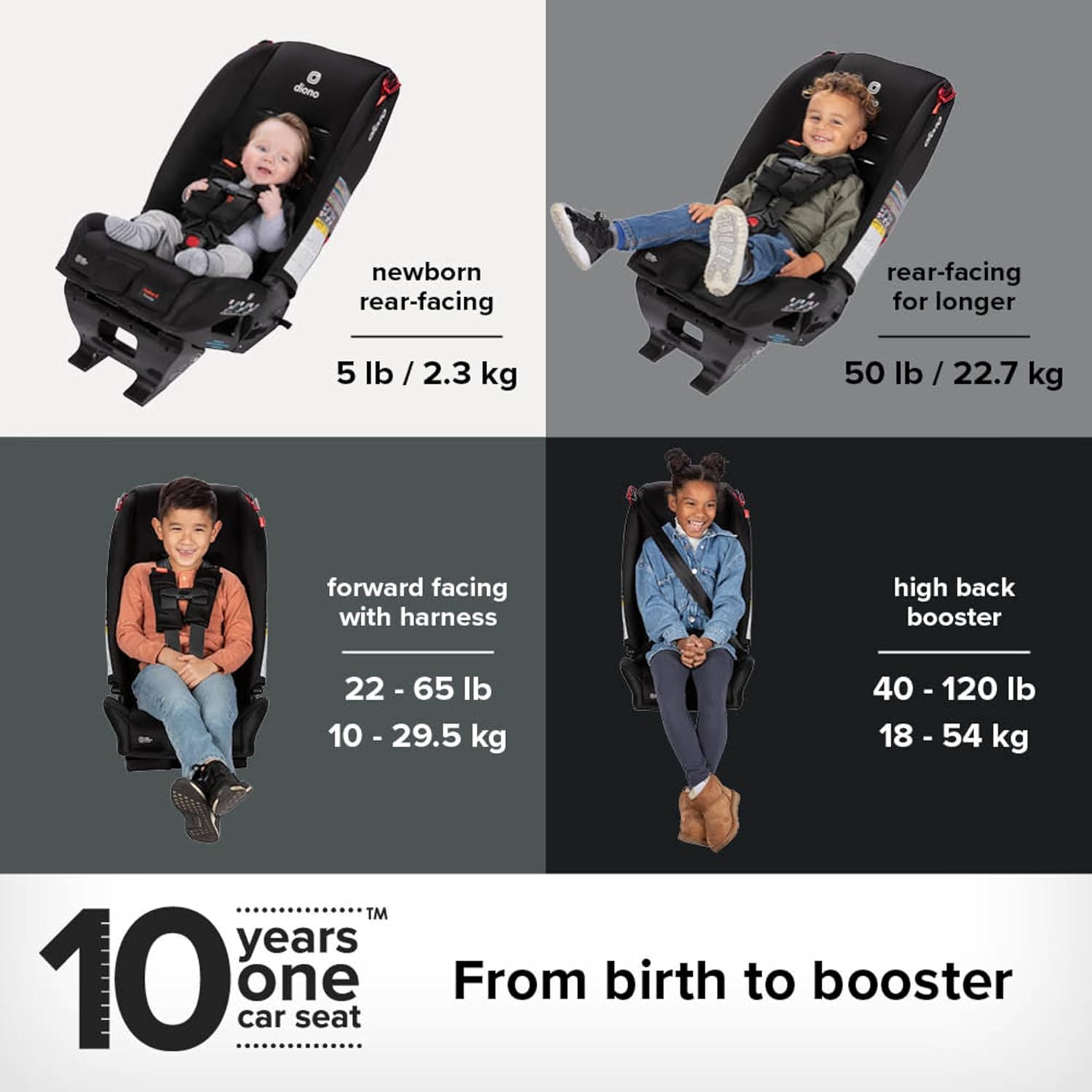 • 10 Years One Car Seat - from Birth to Booster (4 - 120 lb) it's all you will need. Grows with your child, ultimate protection on every road trip. 4 modes in 1 seat!