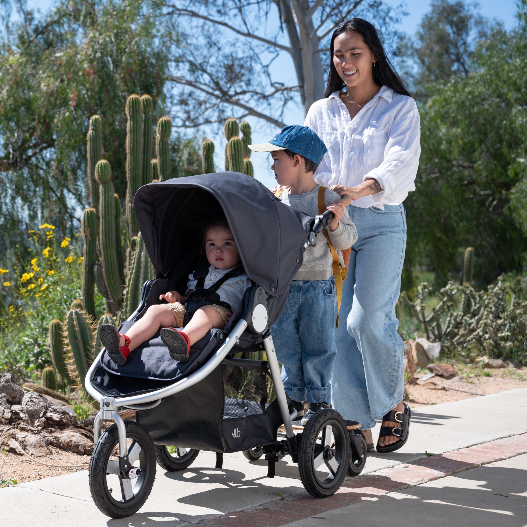 A skateboard-style toddler board with a slip resistant deck. The Mini Board easily attaches to the back of the stroller and offers a fun, “I’m a big kid” ride along experience. This new, improved version allows you to fold and stow the board when not in use with just a few snaps. The stroller is foldable with the board attached.