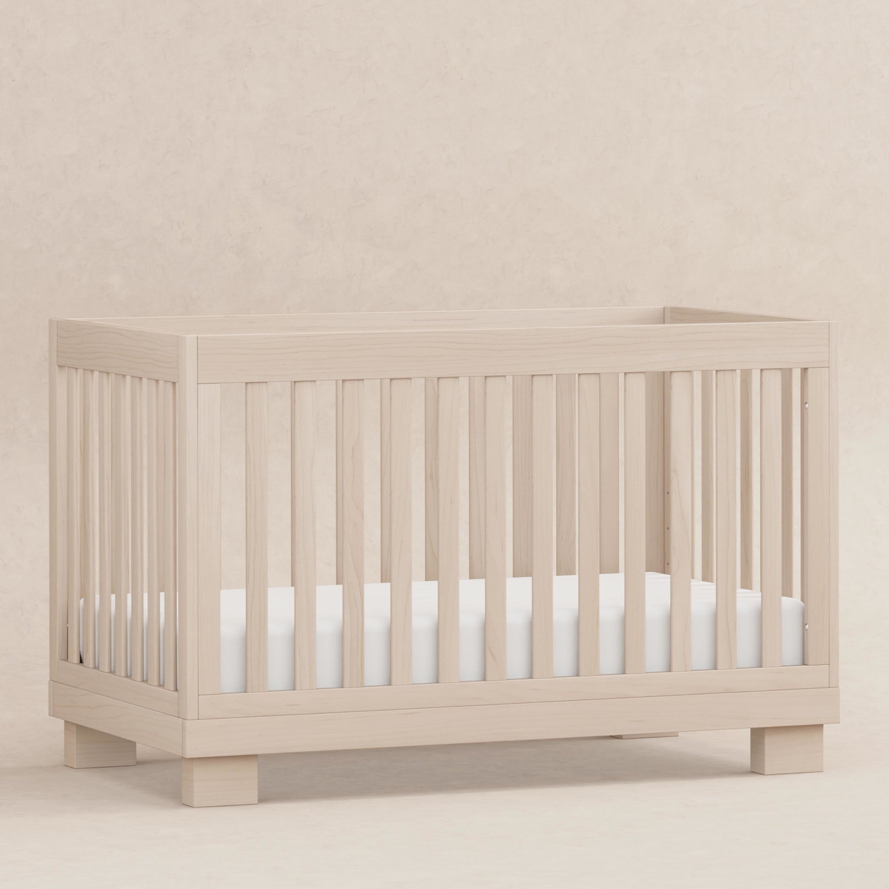 The Modo 3-in-1 Convertible Crib is the epitome of modern simplicity, its sleek, safe, and sophisticated. All-slat sides allow you to keep an eye on babe from every angle and the solid New Zealand pine wood base ensures it's sturdy for your energetic toddler. For your babe's safety, the Modo is screened for harmful chemicals to ensure it meets GREENGUARD GOLD Certification. An included toddler bed conversion kit allows you to seamlessly convert from crib to toddler bed to daybed as your babe grows.