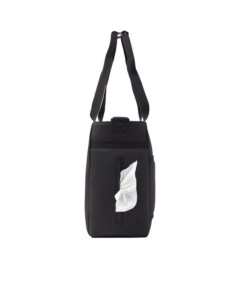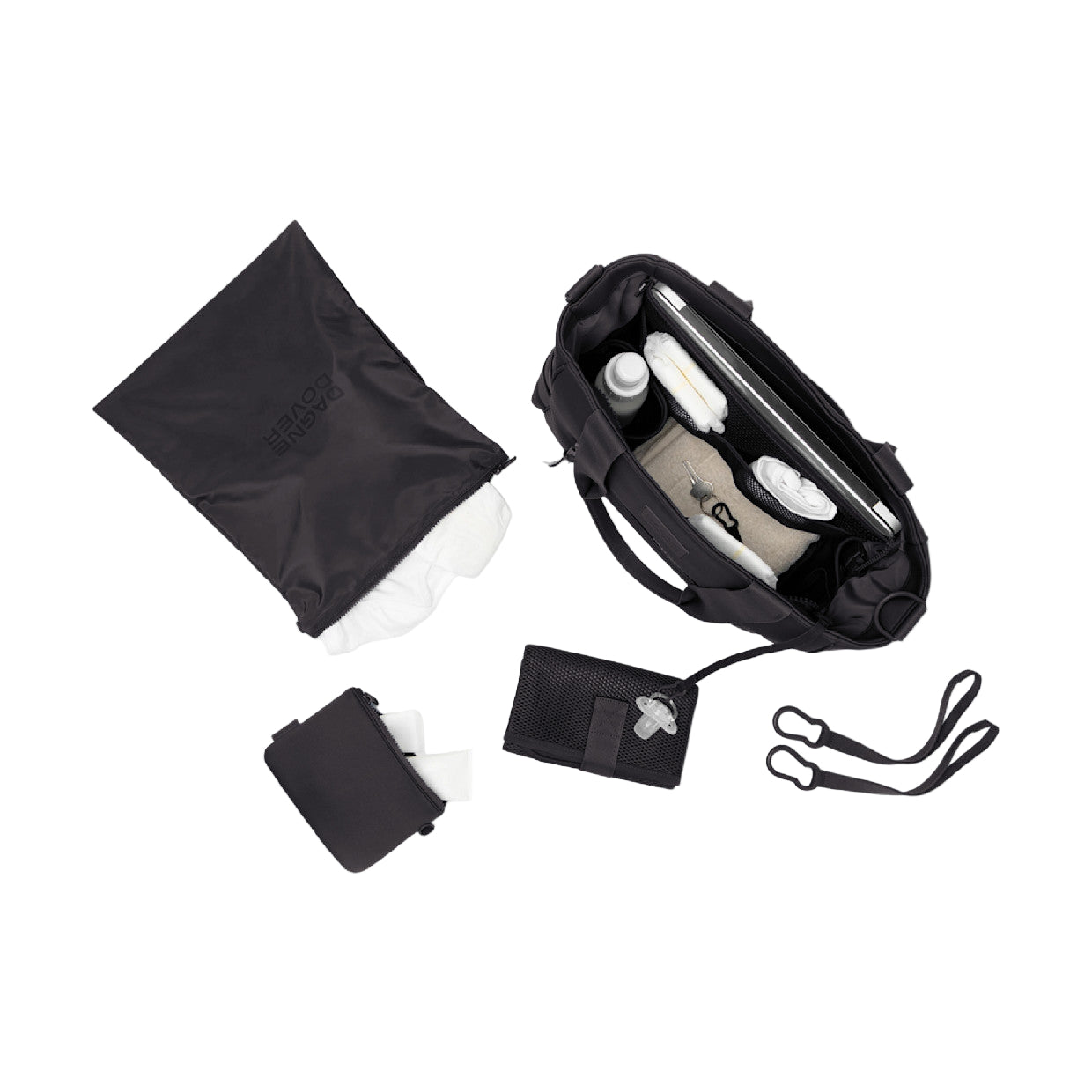 The Dagne Dover Wade Diaper Tote is designed for parents with newborn and toddlers. It has enough room for all your essentials plus pockets for diapers, wipes, bottles and whatever else baby needs. There’s also an exterior phone pocket, interior pouches, two key leashes (one for your keys, the other for their pacifier) and a mini changing mat. It can fit most 13” laptops and clips to a stroller when you need to go hands-free.