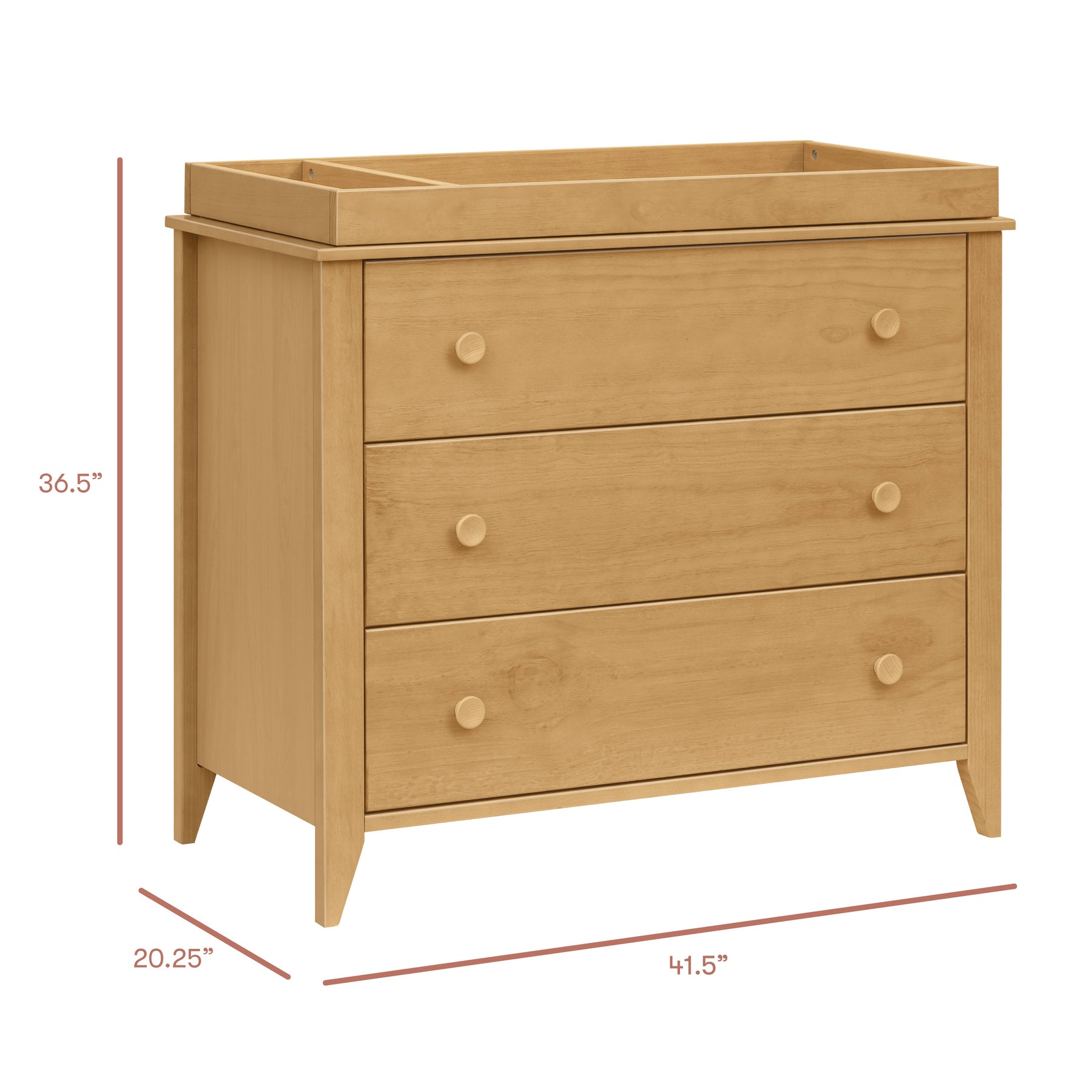 Mid-century modern, meet craftsman charm in the babyletto Sprout 3-drawer Changer Dresser. Versatile in design and function, this dresser seamlessly moves from the nursery to a big kid room. A removable changer top with a sectioned tray keeps those diaper-changing supplies within reach. Three spacious, smooth-glide drawers provide ample space for a growing babe’s wardrobe. Pair it with the Sprout 4-in-1 Convertible Crib for a classic mid-century modern nursery.