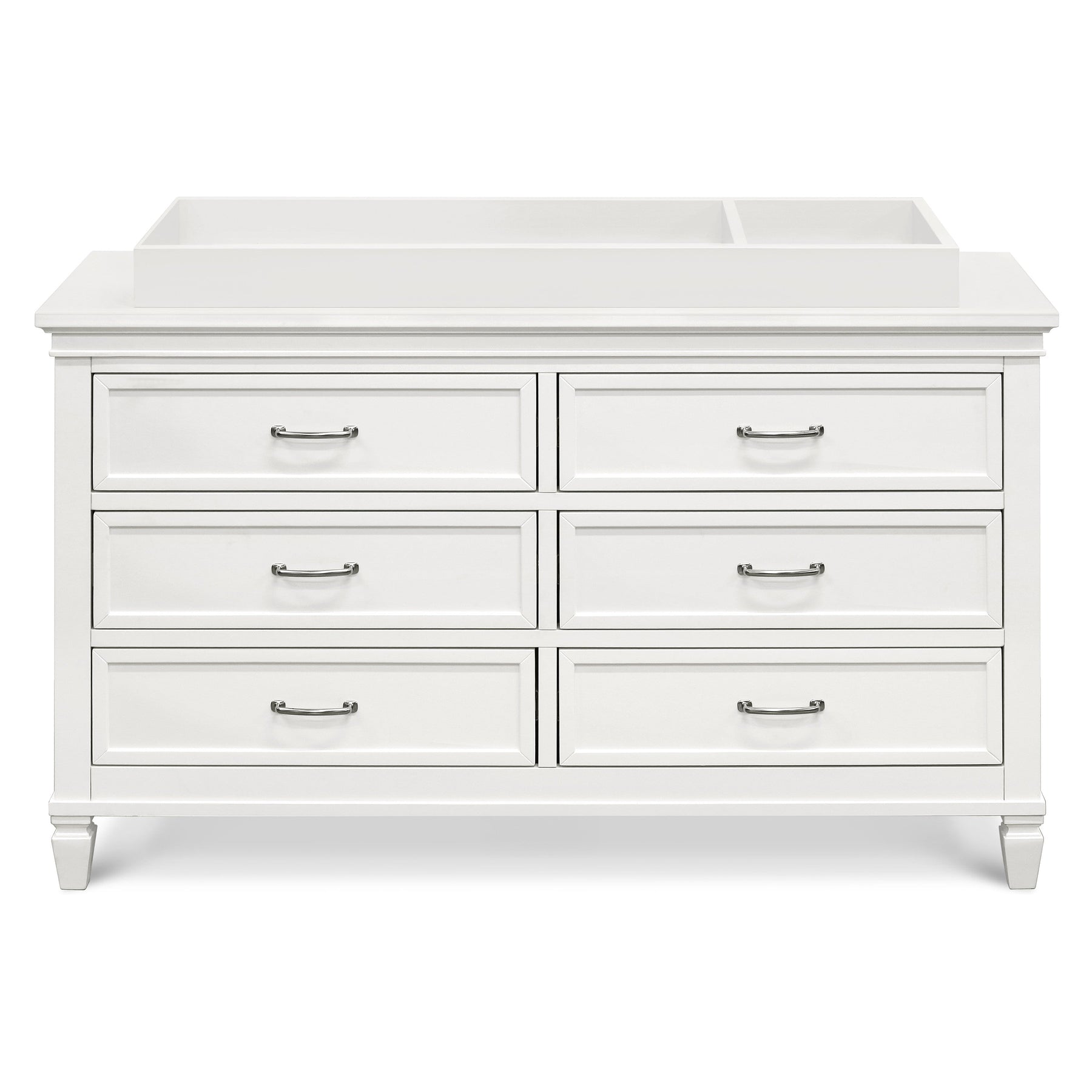 Bring the elegance of romantic French country inspired style into the home with the Darlington 6-Drawer Dresser. The dresser balances classic raised molding on six drawer fronts, delicate tapered feet, and accent satin nickel drawer handles. All spacious drawers feature dovetail construction with self-closing, ball-bearing drawer glides. Available in a Warm White finish.