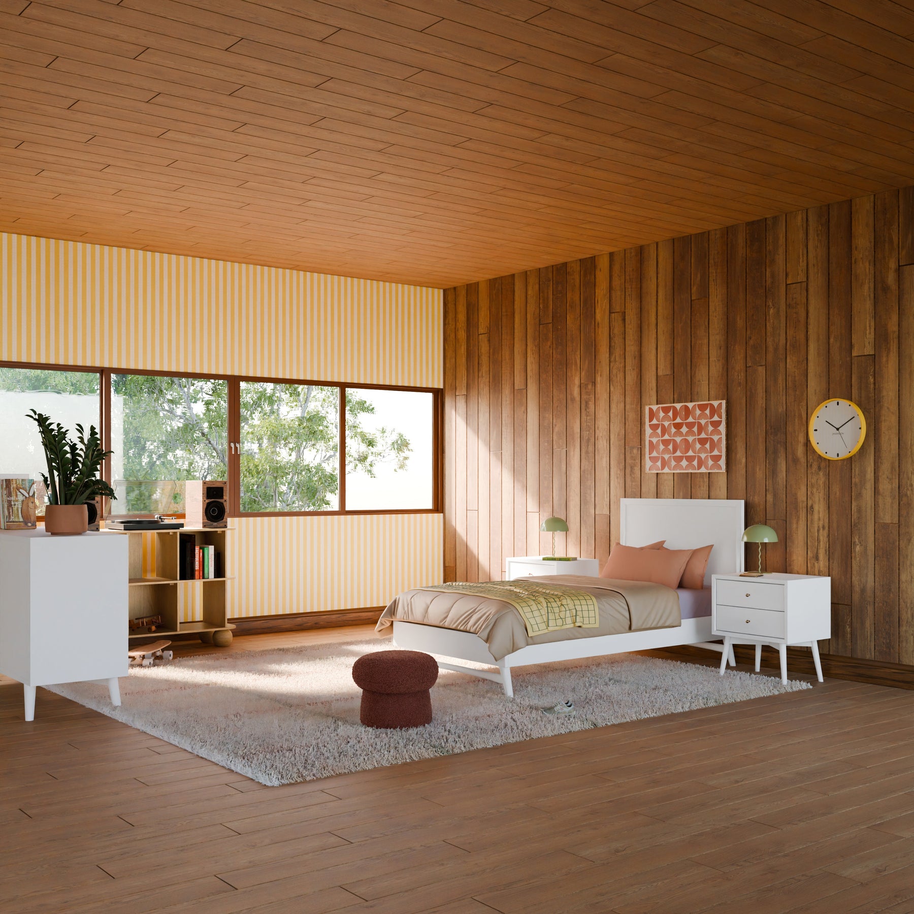 - MID-CENTURY MODERN NIGHTSTAND: Stylish 2-drawer nightstand is designed to sit next to a favorite recliner or in a bedroom.