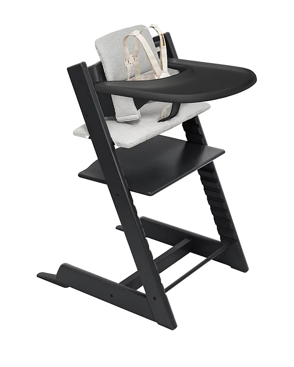 We do say that the Stokke Tripp Trapp is one of the best high chair for most families. Over 50 years after it was first released, it remains a parent favorite for its ergonomics, functionality and durability. The Tripp Trapp allows the baby to be sitting in a 90-90-90 position, referring to the ankles, knees, and hips at 90-degree angles. The child’s center of gravity or weight should be neutral or forward, with feet firmly planted on an adjustable footplate. allowing the chewing and swallowing muscles to do their job. This means that a stable core leads to stable, thorough chewing. This 90-90-90 position provides the most stability for the head and neck while the child is swallowing and enables the arms and hands to reach and grasp most effectively.