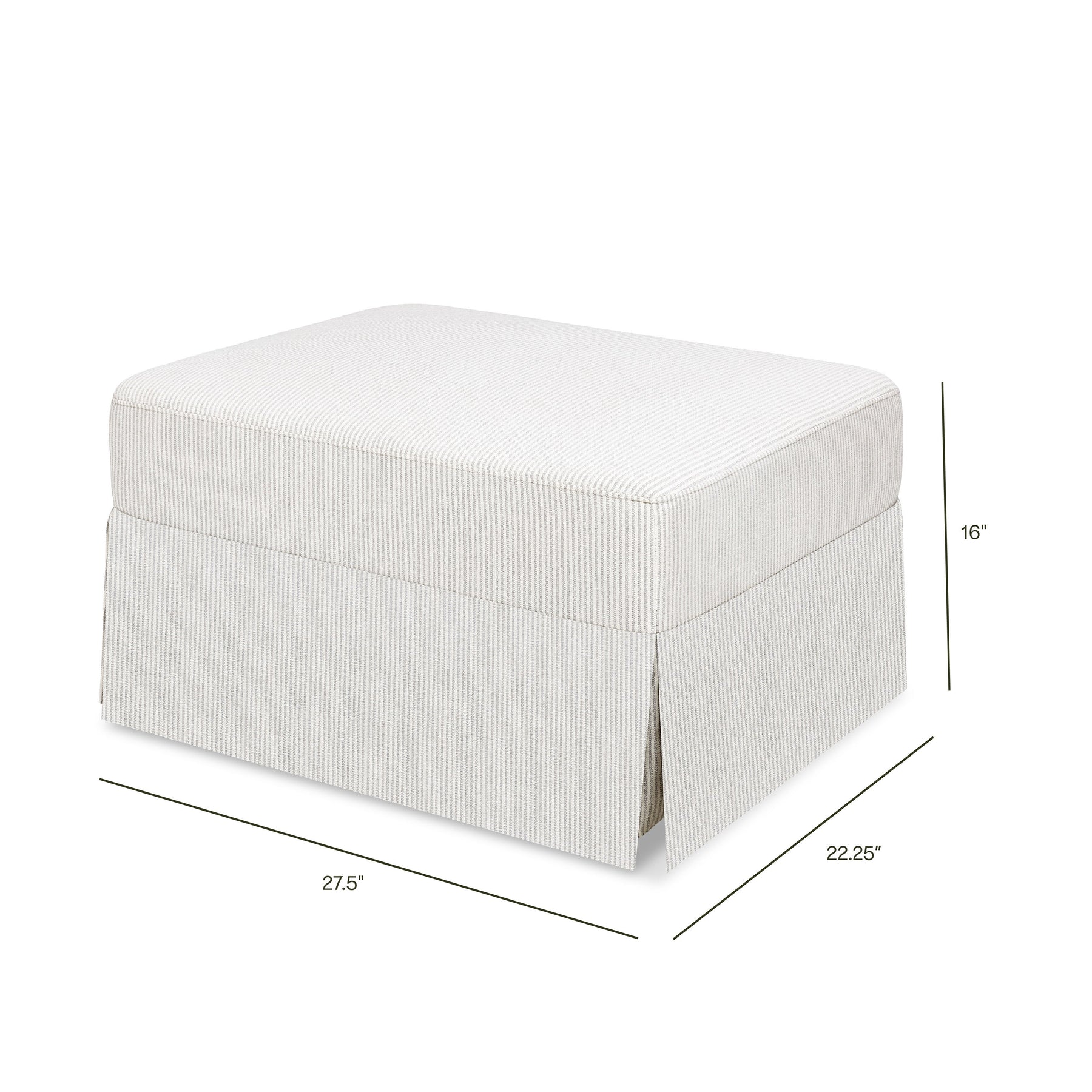 The Crawford Ottoman offers a modern take on traditional slipcover style and brings nursery comfort to a new level. It's the perfect pair to our Crawford Glider, which features a plush pillowback design, added lumbar pillow, and wide seat. The glider and ottoman work together to create a back-and-forth gliding motion that helps you rock your baby to sleep with ease.