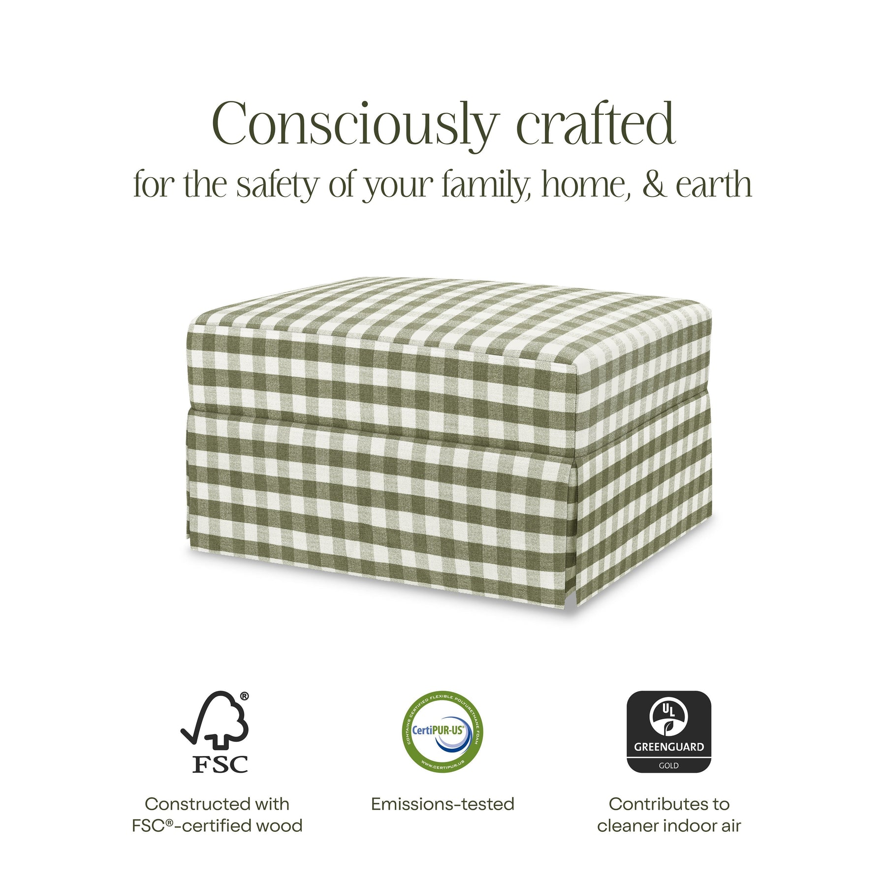 - COMFORTABLE & DURABLE: This traditional style gliding ottoman is upholstered in a durable polyester + REPREVE® blend and features a 6.5" plush but sturdy pillow top for added comfort
