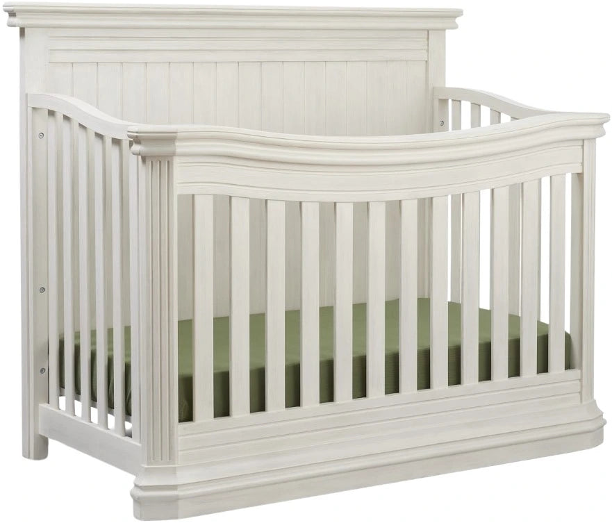 Vista Flat Top 4-in-1 Convertible Crib features a four-in one design that transforms form a crib to a toddler bed with the additional purchase of the Toddle Rail (#136), a day bed and finally into a full size bed with the additional purchase of the Full Size Rails (#215). The Flat headboard, with sloping foot board and beveled corners offer functionality as well as elegance. With its durable finish with fine details, this crib will be a stylish addition to you child’s nursey. Made of solid poplar wood for strength, the crib meets all ASTM and CPSC safety standards and is JPMA Certified.