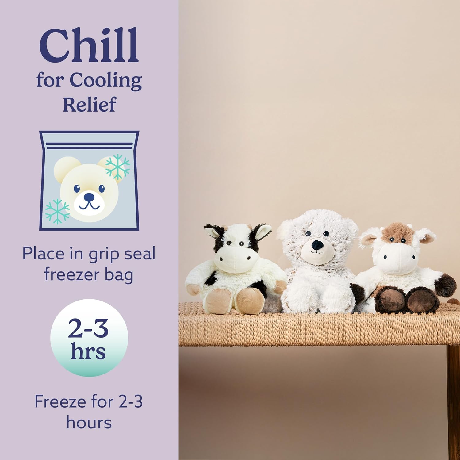 Cool: Place in a sealed freezer bag and freeze for 2–3 hours for cooling relief..