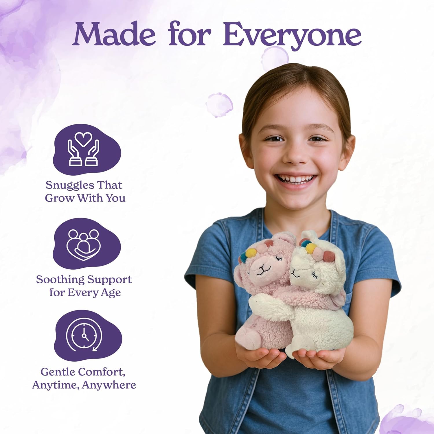 Warmies Hugs are the newest addition to the family of Warmies. This super cute duo of heatable characters are gently scented with French lavender and provide the same warmth and aromatic comfort. Warmies are more than just plush toys. Heat them up in the microwave and allow the gentle heat to keep you warm through the night. Just warm it up in the microwave for up to 90 seconds (800 watt microwave), and allow the soothing scent of French lavender to help you unwind. Children can use these as warm and cuddly bedtime companions, and adults can use them to soothe their sore muscles. Warmies make great plush companions for all ages.Their arms wrap around each other and attach with Velcro making them perfect for mixing and matching to other Warmies Hugs characters. You can also attach them anywhere and bring them with you on the go. These are TWO cute not to LOVE. Warmies are suitable for all ages. 8" Tall