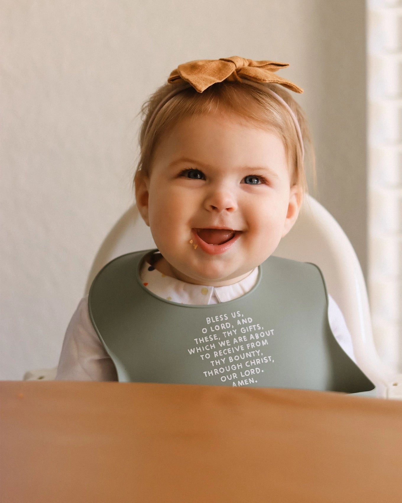 Our Best Selling Meal Blessing bib is a favorite by many for new baby gifts as a little reminder to prayer before meals.