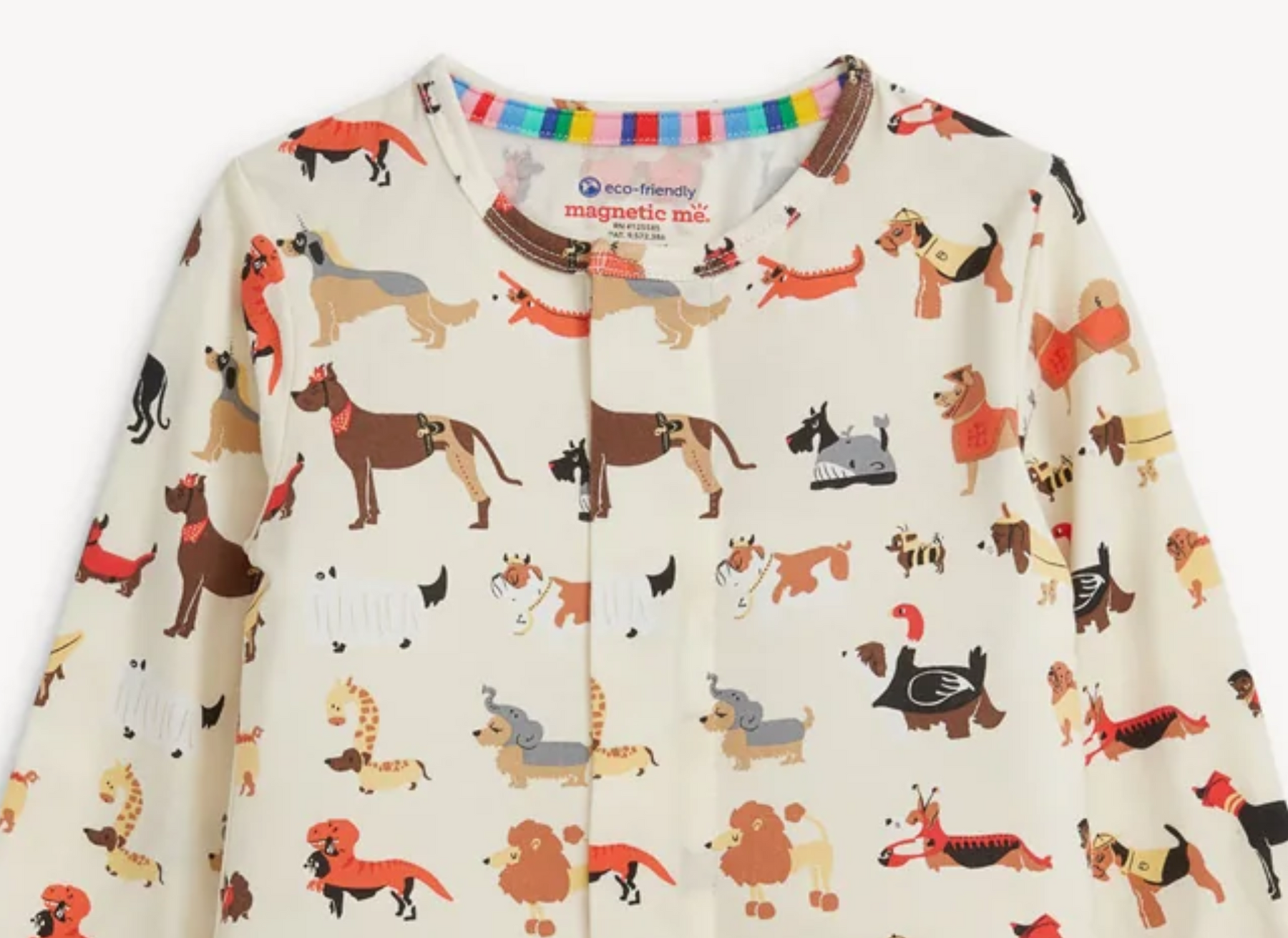 • magnetic closures: magnets line the seam from the neck to upper thigh for sizes up to 0-3m & from neck to crotch for sizes 3-6m and up.
