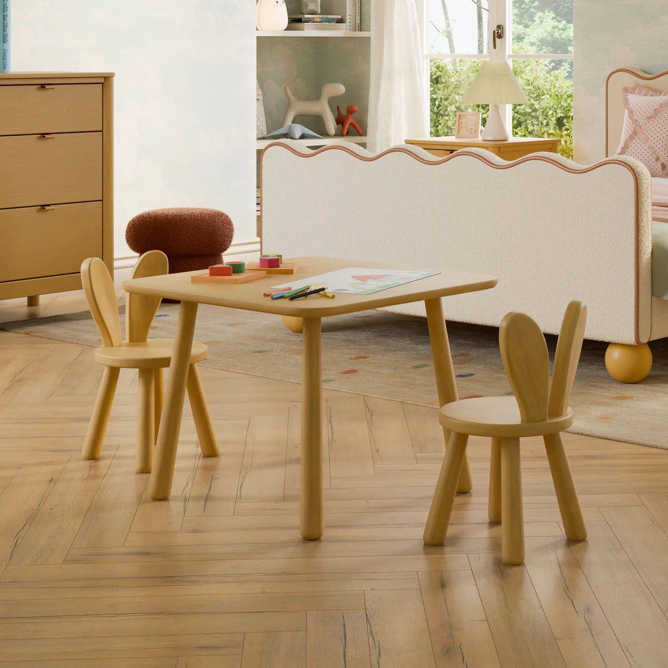 Bring a pop of play to your space with the Hoppy Play Table & Chair Set. Designed with clean lines and a modern silhouette, this kid-sized set includes a table and two bunny-inspired kids chairs made just right for coloring outside the lines, building block towers, or hosting tiny tea parties. Crafted with durable materials and a soft, neutral finish, the Hoppy Play Table blends seamlessly into your home (because playroom pieces shouldn’t have to clash with your style).