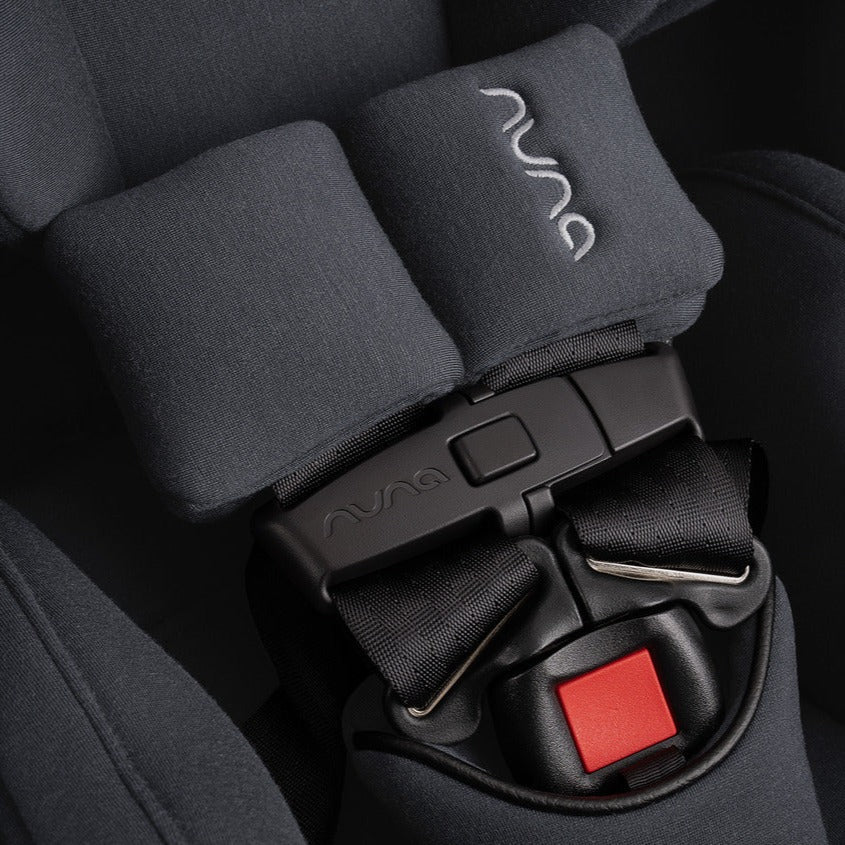 - Integrated magnetic buckle holders help keep straps out of the way when buckling baby in