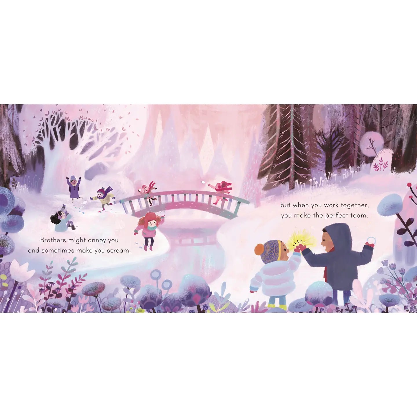 Celebrate brothers, big and small, with this joyful salute to family, filled with whimsical, engaging artwork and a lively rhyming text. Different families and sibling combinations make this book universal. Hardcover picture book.