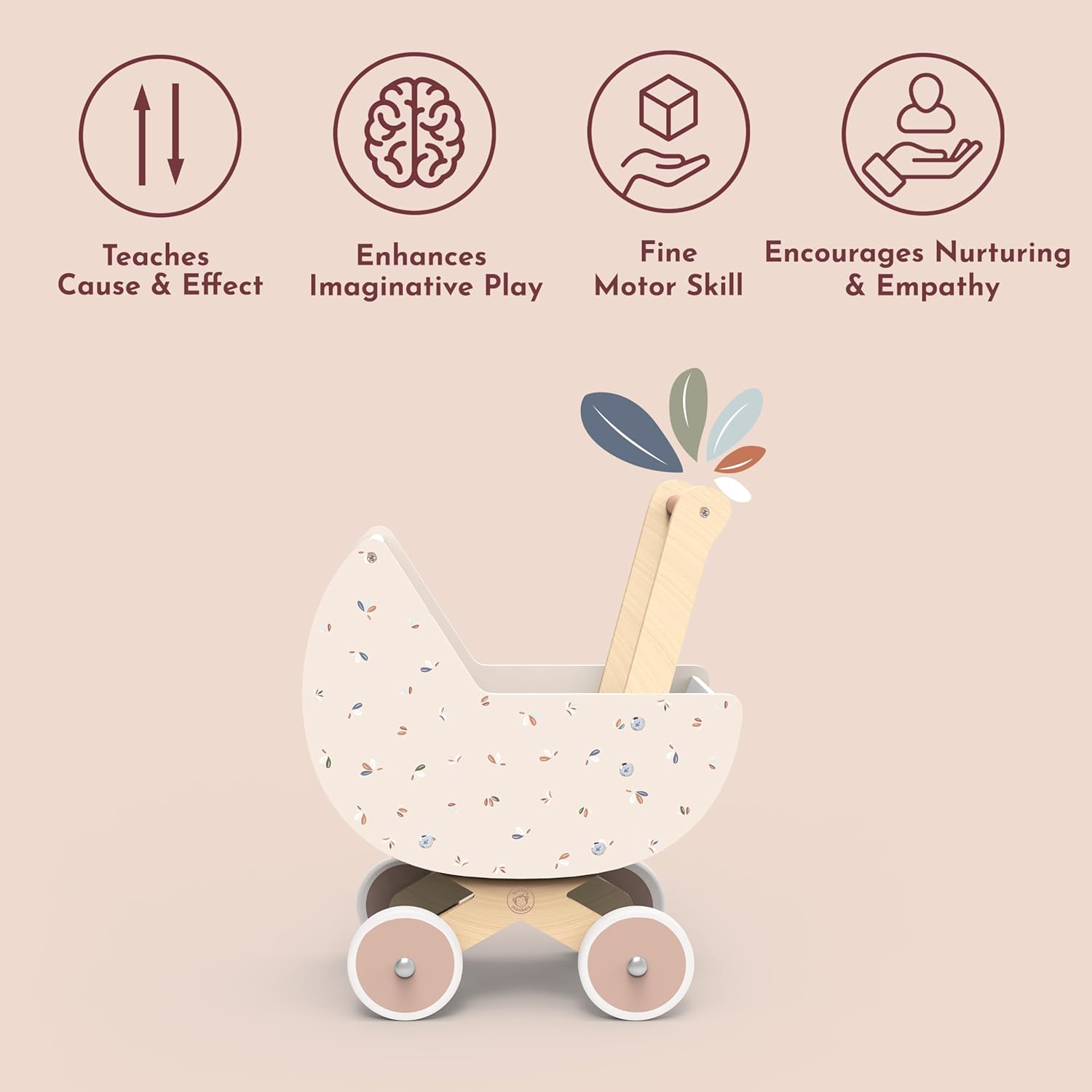 Description Your child will love taking their favorite dolls for a stroll in this beautifully crafted pram. The multicolor design adds a playful touch, making it a perfect gift for any young caregiver. Choose our Doll's Pram for its quality construction, safety features, and timeless appeal that sets it apart from the rest. Made with FSC Certified Wood via our FSC-Certified manufacturing partner and non-toxic, child-safe paints, Speedy Monkey toys meet ASTM F963, California Prop 65, and international safety standards, letting children play safely and imaginatively. Specifications A186:C186 * Recommended Age: 24 months and up * Material: FSC Certified Wood from our certified supplier * Size (inches): L: 16.93 x W: 12.6 x H: 12.99 * Weight: 5.84 lbs - lightweight and easy to maneuver * Care Instructions: Simply clean with a damp cloth, avoiding the use of detergents