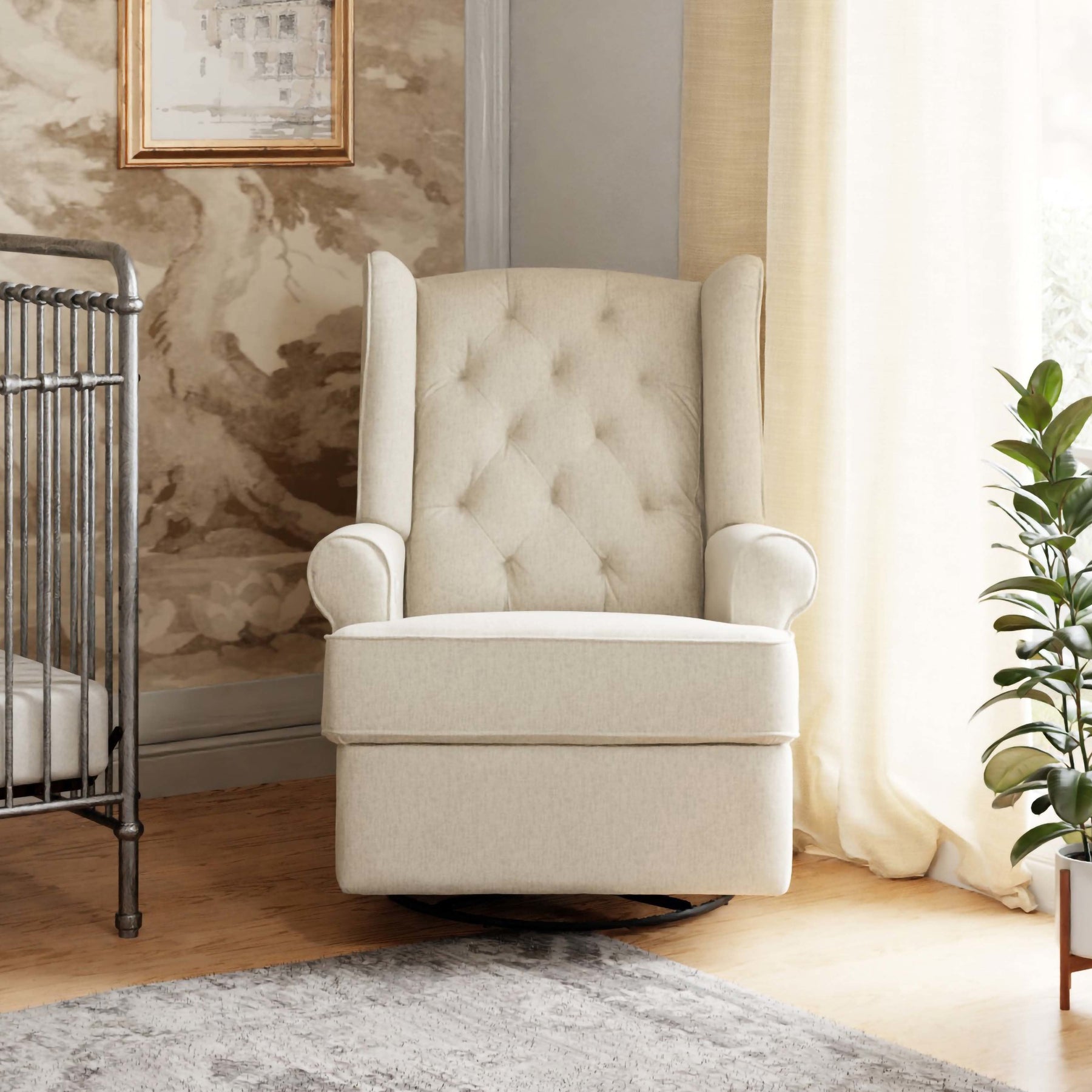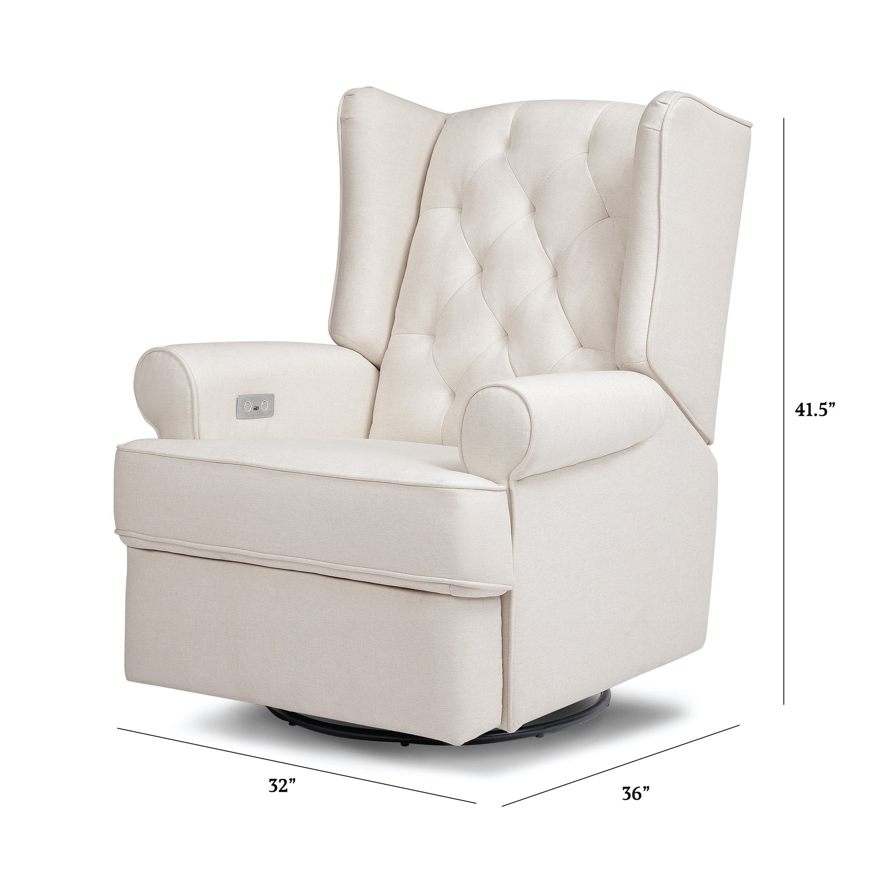 The Harbour Power Recliner has been thoughtfully designed to blend comfort, convenience and style in your nursery and home. Sink into this sizeable chair that glides, swivels, and reclines to a peaceful resting position. With its clean lines, tufted design and wingback style, Harbour can easily transition from nursery to big kid room, playroom or living room. Featuring a premium stain-resistant and moisture-repellent fabric, this durable recliner will look as good as new for years to come.